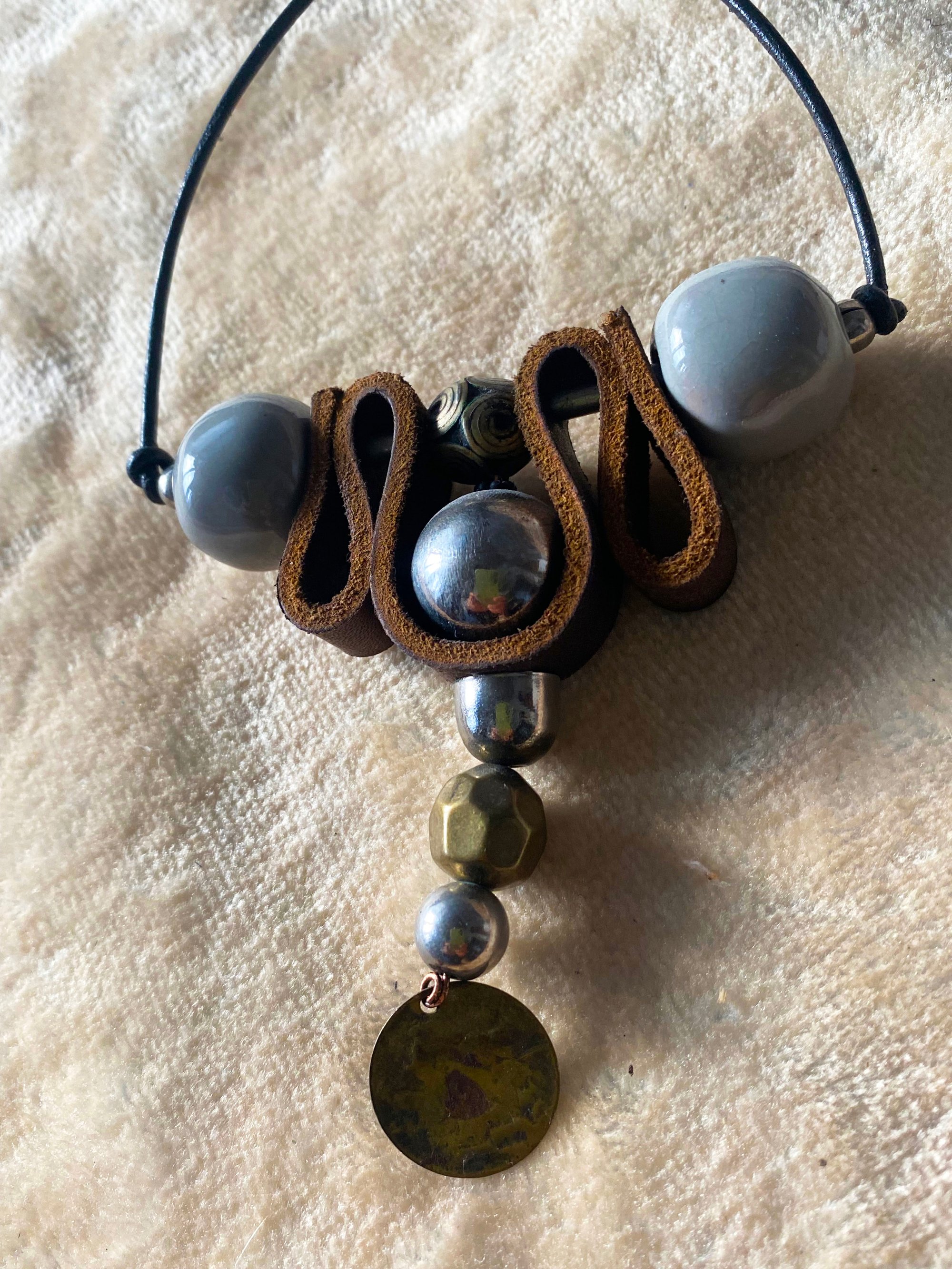 Handgefertigte Assemblage Halskette von Künstlerin Yvette Endrijautzki.